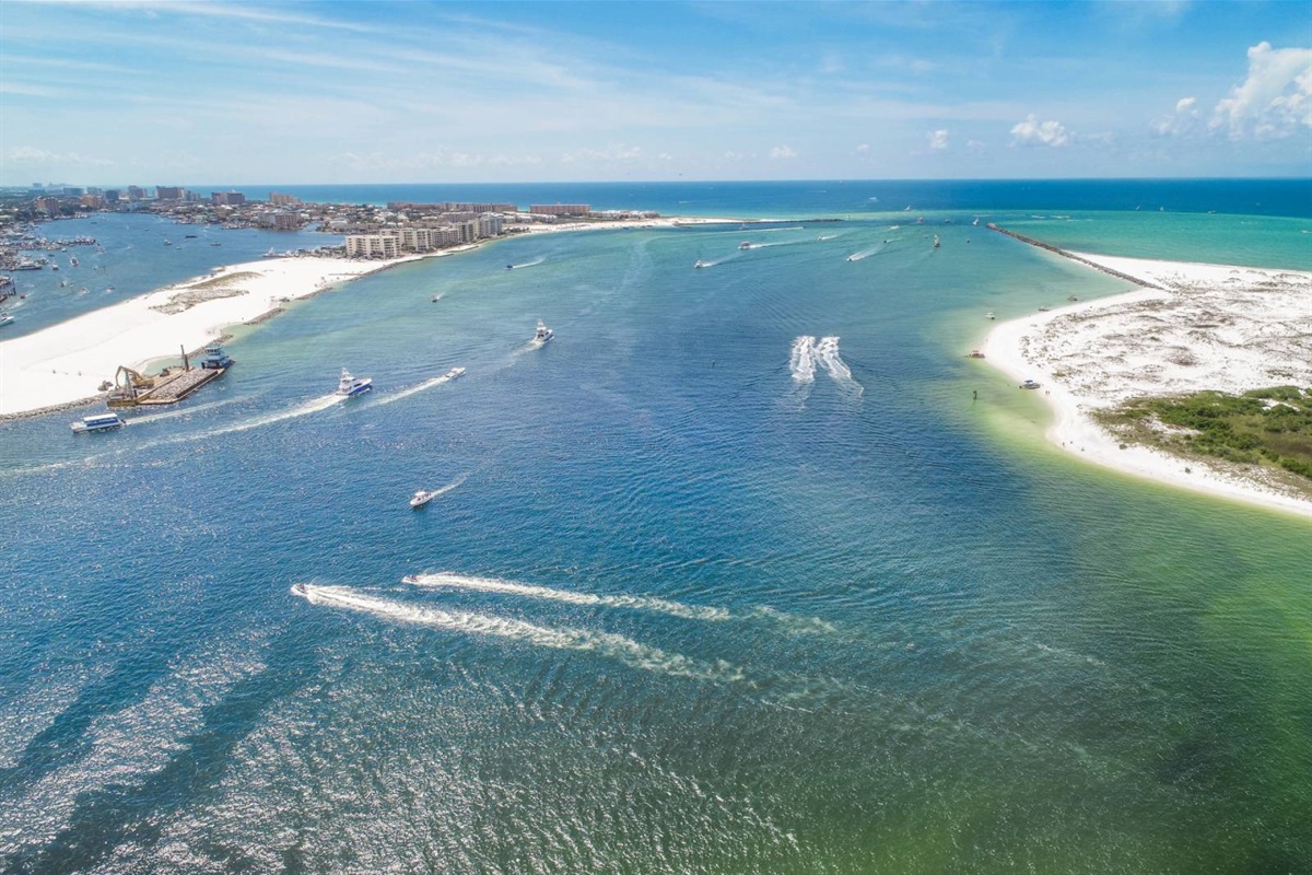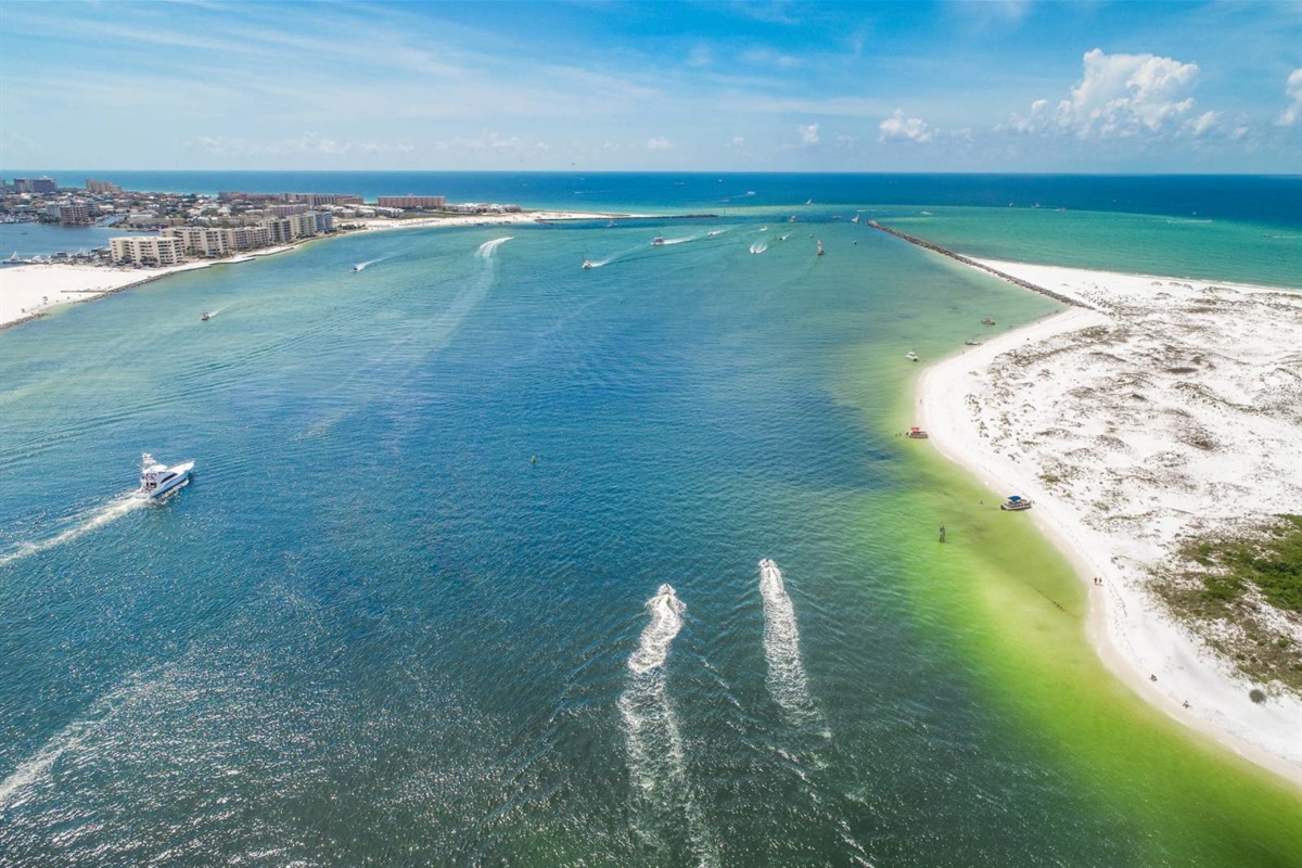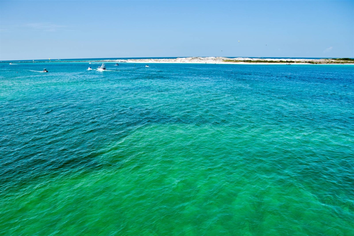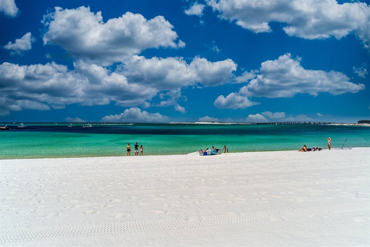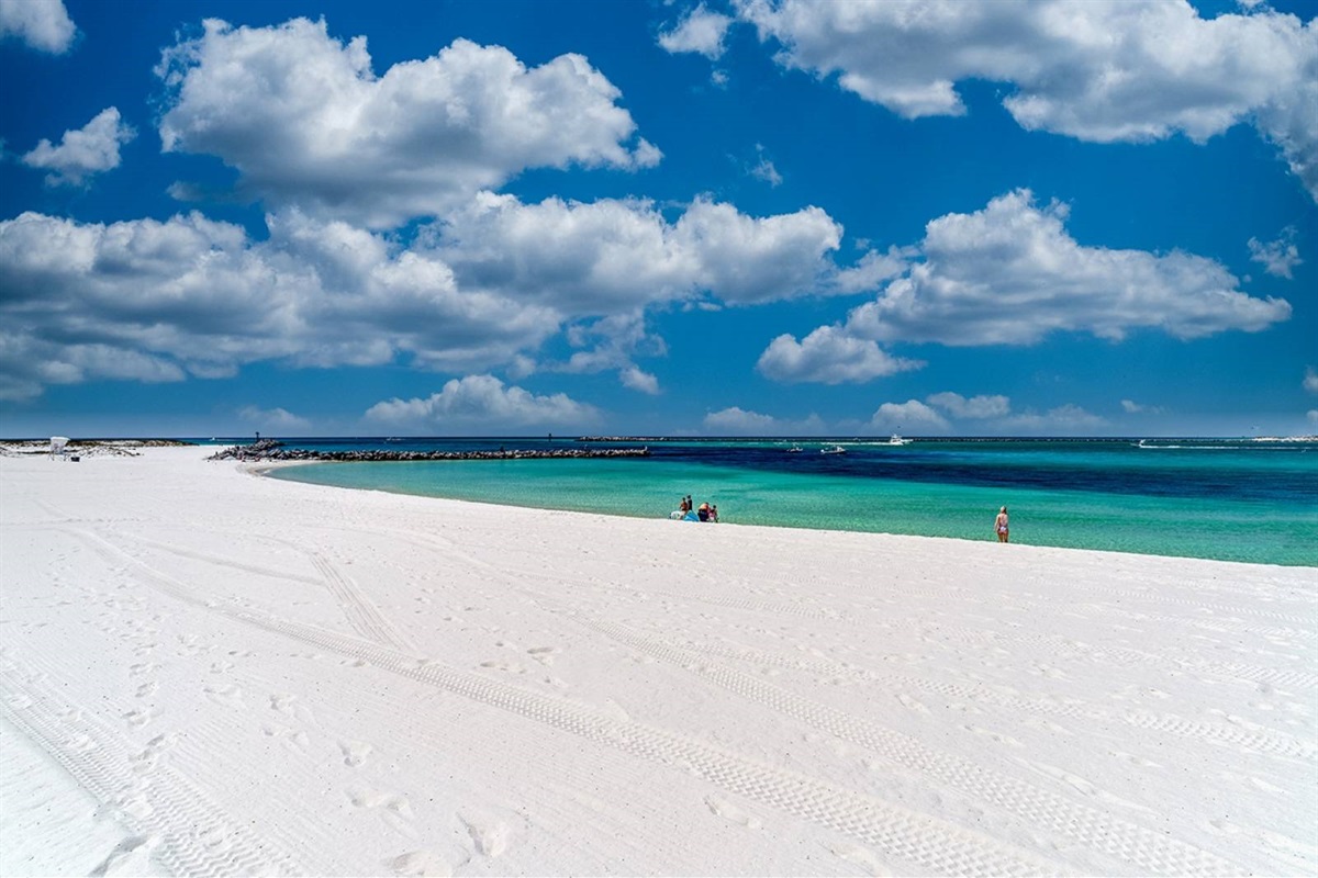 The beach near the East Pass and Destin jetties is one of the most scenic stretches on the Emerald Coast. Watch the charter boats head out for the morning catch, spot dolphins from the shore, or set up camp with an umbrella and chairs for the day. The turquoise water here is the real deal — photos don't do it justice.