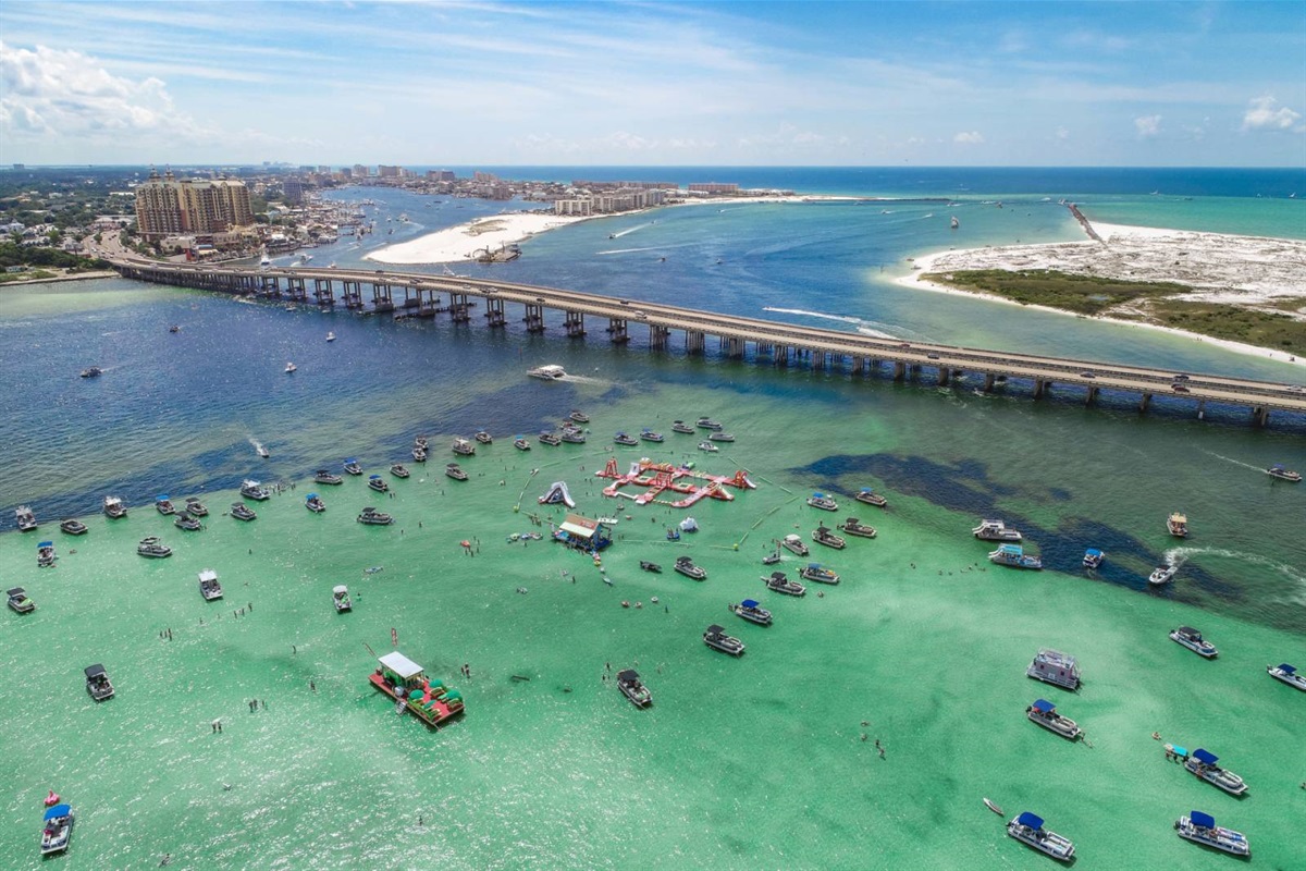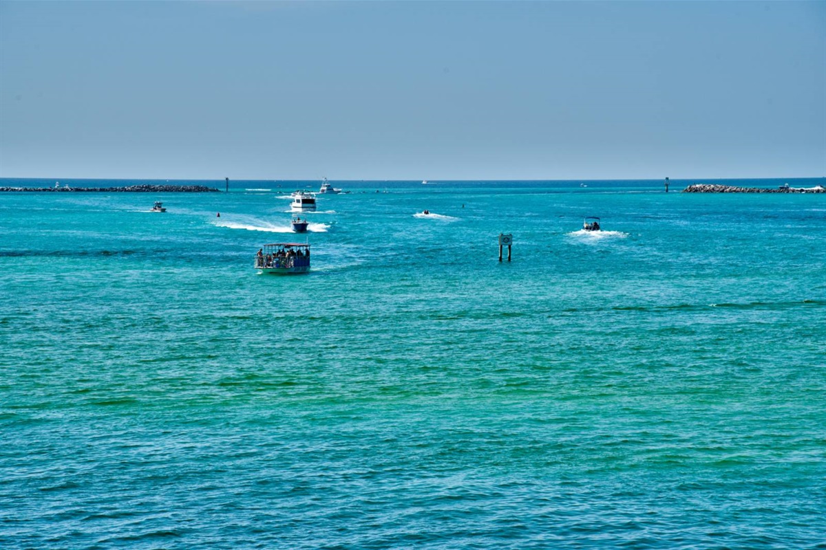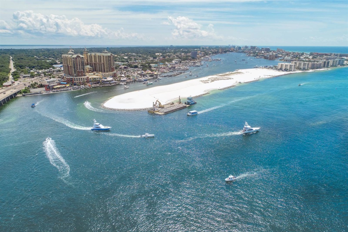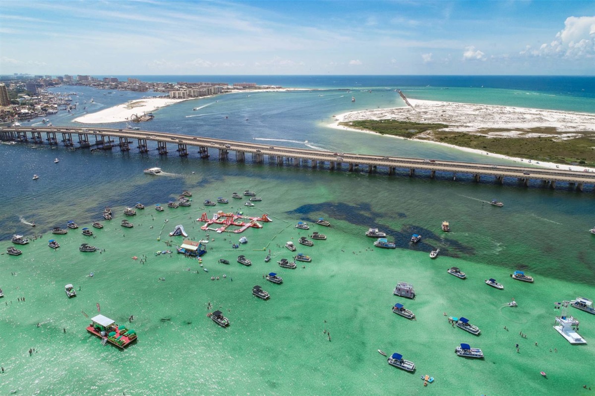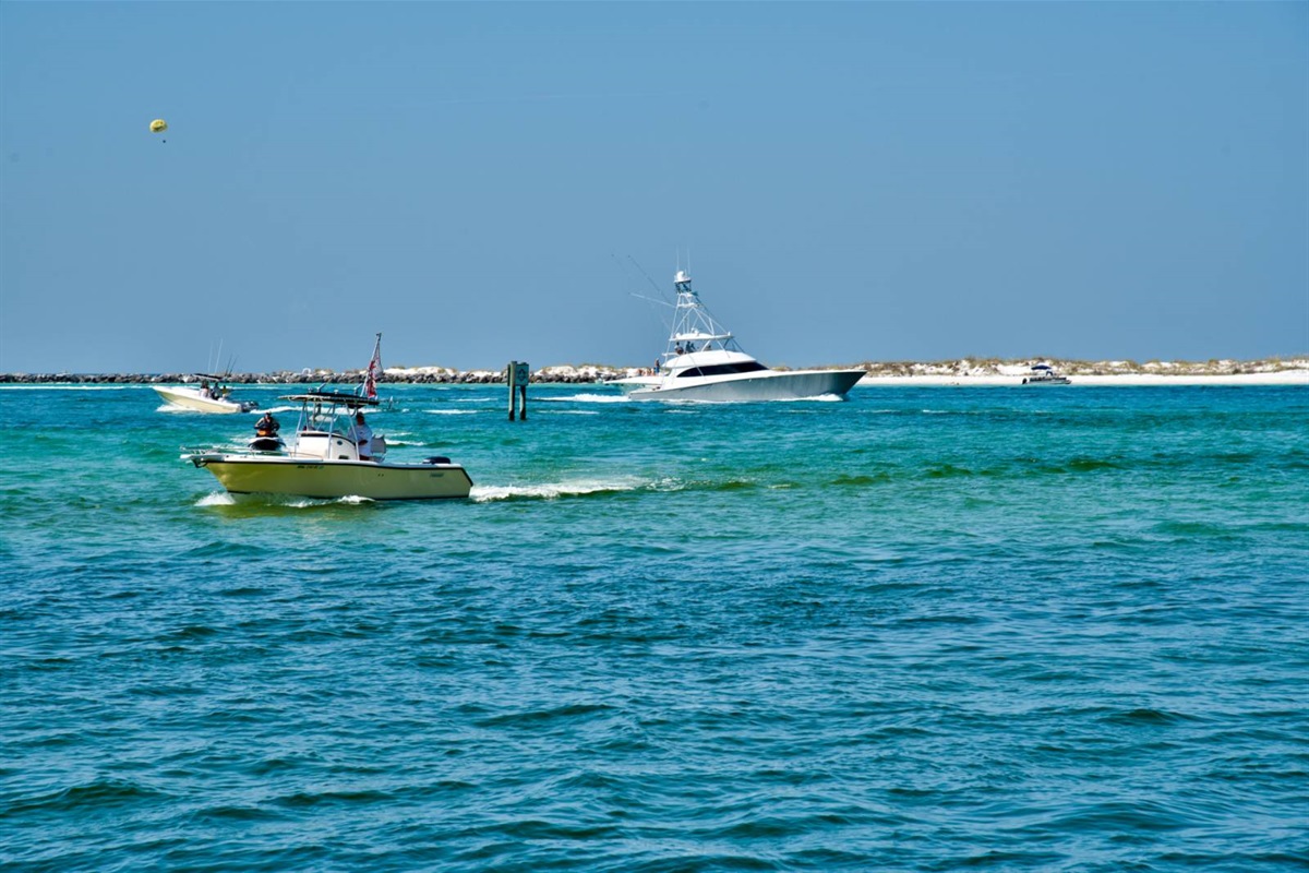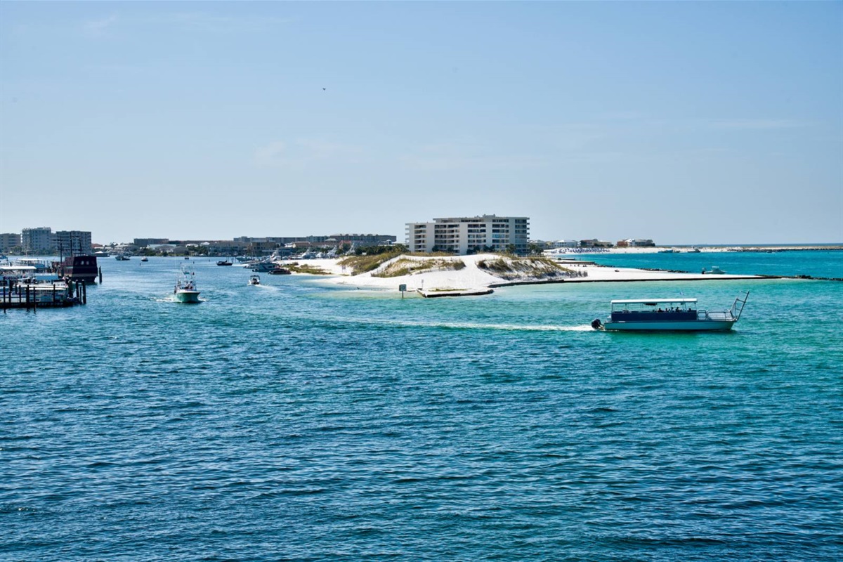 The beach near the East Pass and Destin jetties is one of the most scenic stretches on the Emerald Coast. Watch the charter boats head out for the morning catch, spot dolphins from the shore, or set up camp with an umbrella and chairs for the day. The turquoise water here is the real deal — photos don't do it justice.