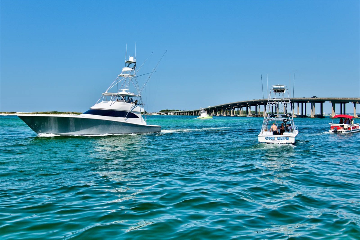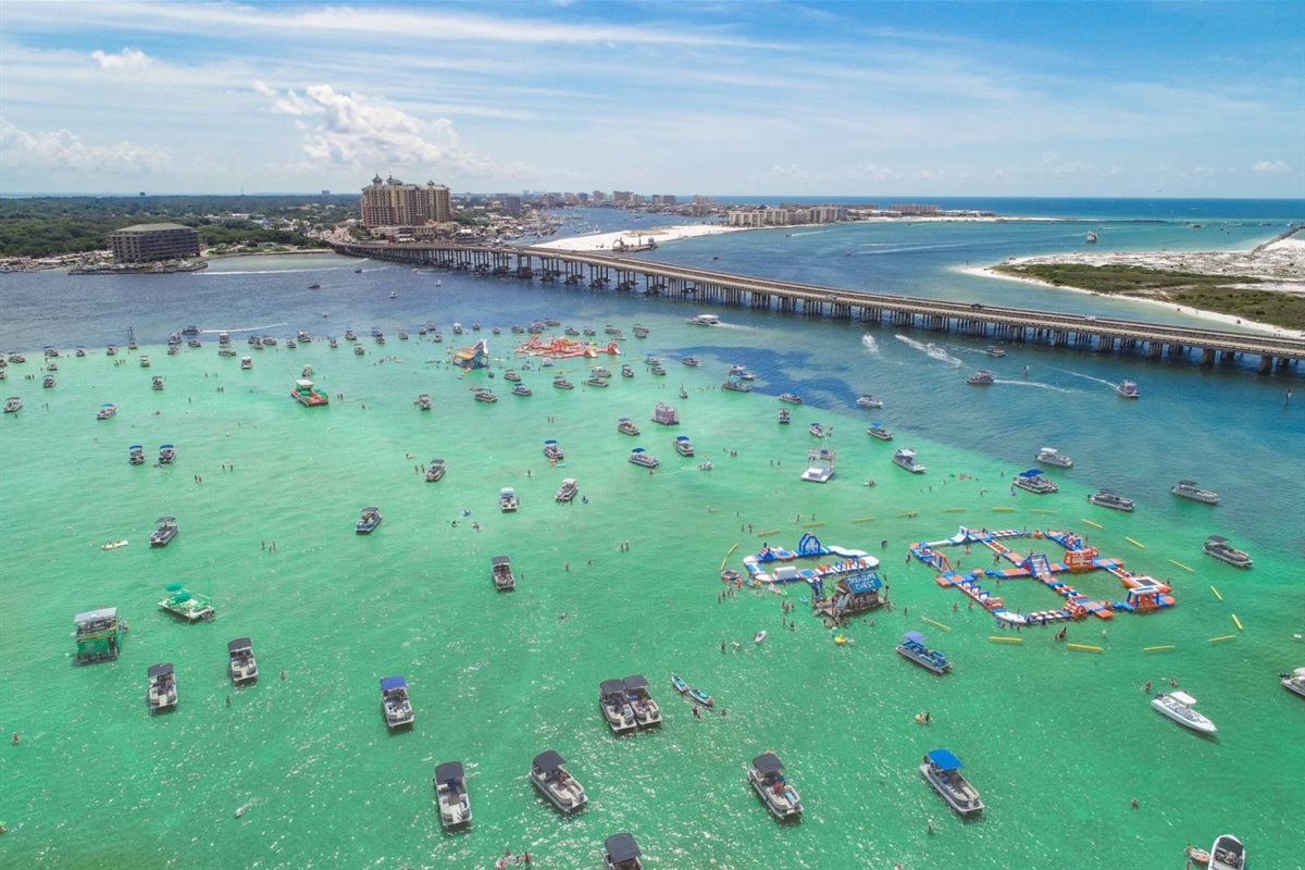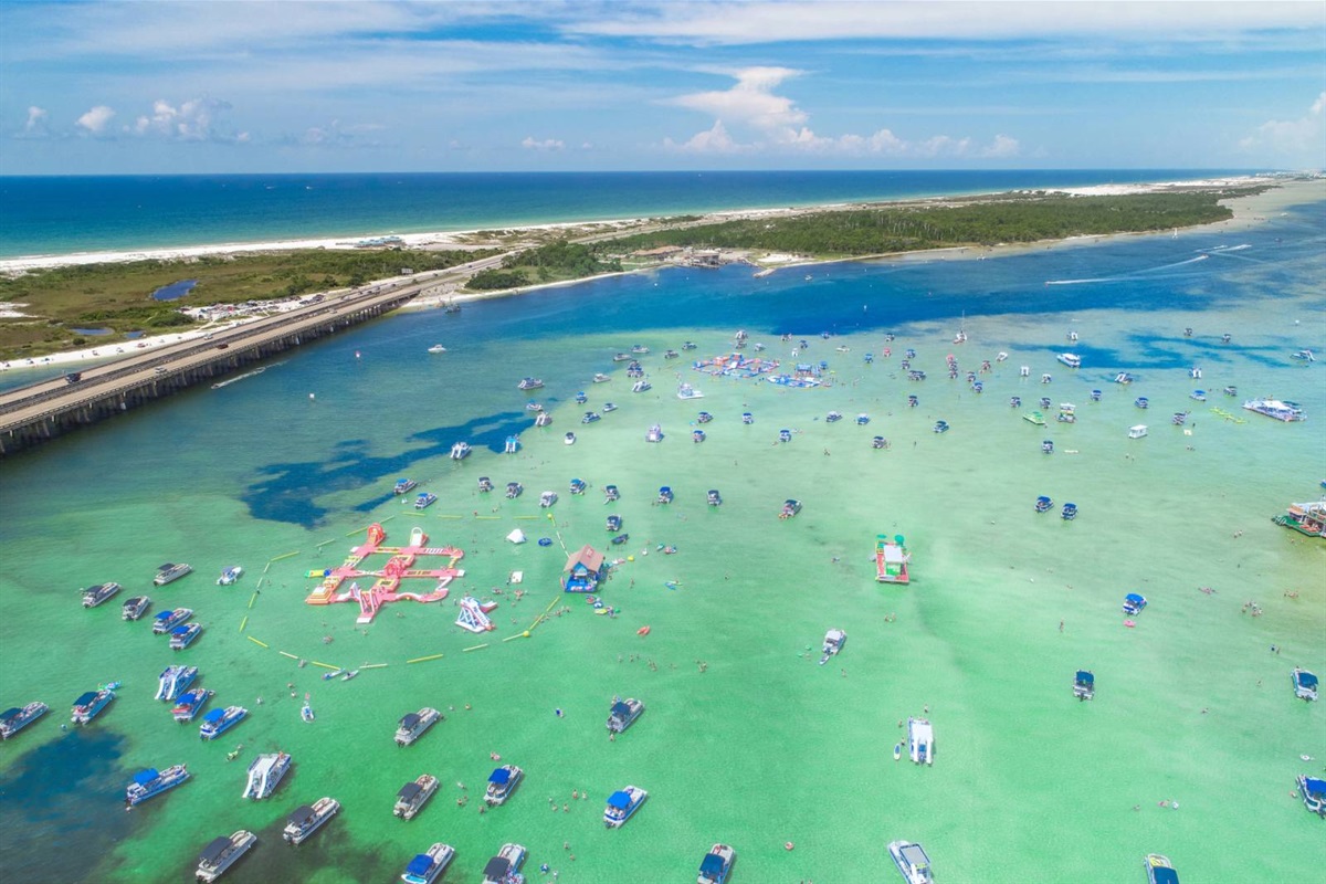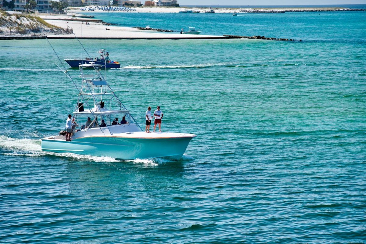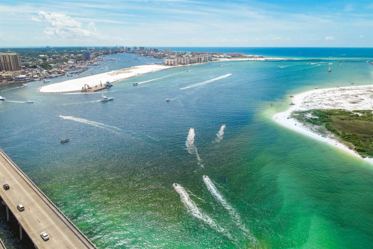 The beach near the East Pass and Destin jetties is one of the most scenic stretches on the Emerald Coast. Watch the charter boats head out for the morning catch, spot dolphins from the shore, or set up camp with an umbrella and chairs for the day. The turquoise water here is the real deal — photos don't do it justice.