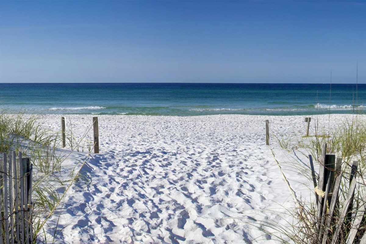 This property is as close to "beachfront" as it gets without being on a high-rise. A sandy path through the dunes leads you to Destin's famous sugar-white sand and crystal-clear emerald waters in under a minute. No shuttles, no long walks through parking garages, no crossing busy roads. Just step off the deck, follow the path, and your toes are in the sand.