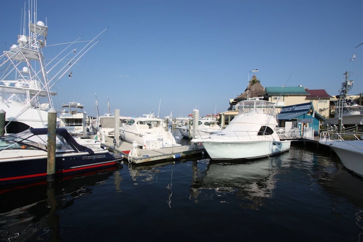 The fully equipped galley kitchen has everything you need to cook full meals during your stay: granite countertops, a full-size refrigerator, oven and range, microwave, dishwasher, coffee maker, and plenty of cookware, dishes, and utensils. Whether you're making a quick breakfast before the beach or preparing a seafood feast with your fresh catch, you're covered.